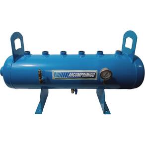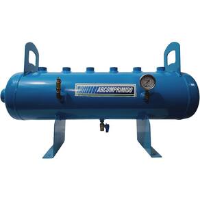 Distribuidor de Ar para Mineração DH25-6 (mod.1) com 02 conexões nas calotas, 01 de 2'' e 01 de 1". 06 saídas superior de 1". Luvas laterais para acessórios de segurança (manômetro e válvula de segurança) de 1/4'' e luva inferior de 1/4'' (dreno). Pressão máxima de trabalho 12,3kg/cm. Dimensões; Altura: 350 mm, Comprimento total: 1030 mm, Diametro corpo: 180 mm, Altura total com alça de movimentação: 430 mm. Acompanha documentação com certificado de teste hidrostático. Acompanha os acessórios de segurança manômetro, válvula de segurança e dreno Manual - necessários para uso.