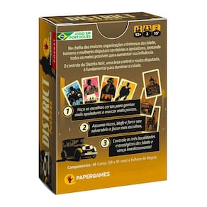 District noir jogo de cartas boardgames papergames pt-br District noir Na chefia das maiores organizações criminosas, poderosos líderes disputam territórios e apoio, tentando todos os meios possíveis para aumentar sua influência. Bem no centro de hoboken fica o distrito noir, uma área muito disputada e fundamental para dominar a cidade. Você e um líder oponente estão envolvidos em uma franca batalha pelo controle do distrito noir. Há dois caminhos para a vitória: conquistar os diversos grupos de apoiadores do distrito noir ou controlar diretamente as três localidades estratégicas da cidade. Manobras sagazes exigem a escolha cuidadosa de suas ações ao mesmo tempo em que permitem controlar as ações que seu adversário pode realizar. Como jogar sistema 1 - 2 - 3 1 faça as escolhas certas para ganhar mais apoiadores e marcar mais pontos. 2 assuma riscos, blefe e force seu adversário a fazer más escolhas. 3 controle as três localidades estratégicas da cidade e vença imediatamente Pontos chave Seja bem-vindo à perigosa década de 50, onde organizações criminosas disputam por territórios e poder para aumentar sua influência. Vivencie o glamour e o perigo de cada esquina de hoboken, uma cidade repleta de intrigas onde só os criminosos mais ardilosos sobrevivem. Um jogo perfeito para duelos acirrados em district noir, cada partida é um embate direto entre dois jogadores, tornando cada rodada uma disputa intensa. Prepare-se para duelos memoráveis Estratégia e blefe à flor da pele em cada rodada, avalie os riscos, engane seu adversário e force-o a tomar péssimas decisões. Será você o mestre da manipulação em district noir Reviravoltas emocionantes e decisões difíceis mesmo quando tudo parecer estar contra você, uma jogada estratégica pode virar o jogo conquiste as principais localidades da cidade e surpreenda seu oponente com sua vitória inesperada Rápido e intuitivo district noir combina regras descomplicadas com partidas rápidas, tornando-se o jogo ideal para quem busca duelos estratégicos sem demora Pequeno, barato e intenso district noir é mais um jogo da linha , fácil de transportar, barato e perfeito para ser divertir a dois Autor: nao shimamura,nobutake dogen Arte: vincent roché Componentes: 48 cartas 59 x 91 mm Folheto de regras Categorias: Colecionar conjuntos, compra aberta, gerenciamento de mãos, apostas e blefes Homologação Inmetro: IP-BRI-2312/2021-03 Marca: Não Informado