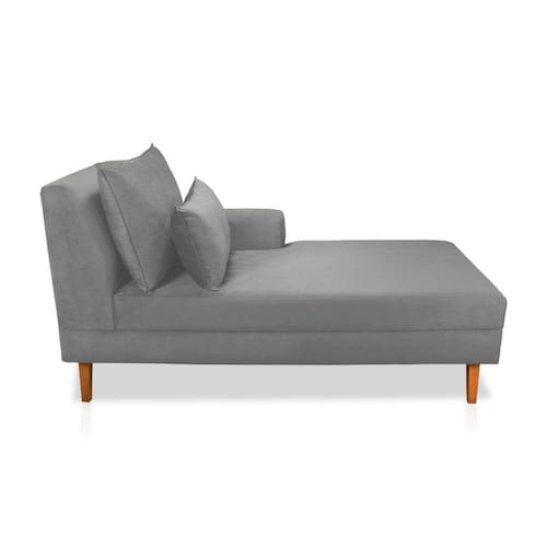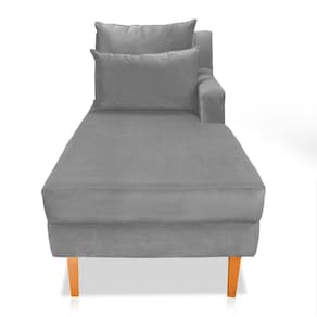 Divã Chaise Jade 1,60 Cm Pés Chanfrado Veludo Cinza