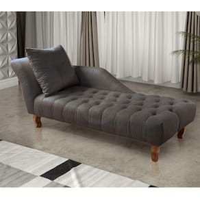 Encosto e Braços: Almofada fixa com capitonê, espuma D28 Soft de 7cm, percinta elástica italiana.