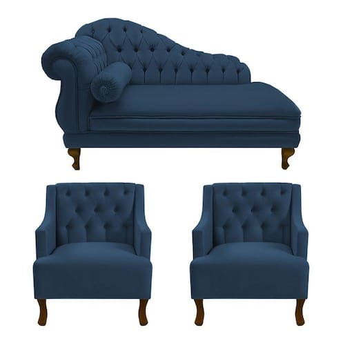 Divã Larissa 185 cm e 2 Poltronas Genesis Suede Azul Marinho - LM DECOR