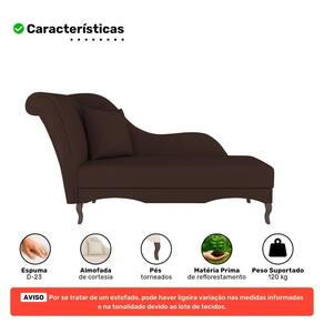 Madeira de Eucalipto, Espuma D-20 / D-23Divã Recamier Chaise Longue Valentina Clássico com Pés de Madeira: elegância, conforto e sofisticação em uma peça única que valoriza qualquer ambiente. Com encosto curvo e braço lateral à direita (visão sentado), une design clássico e funcionalidade, tornando-se ideal para leitura, descanso ou como assento adicional em espaços sociais. Sua estrutura é produzida em madeira de eucalipto, garantindo resistência e durabilidade. O estofado macio oferece conforto tanto para 02 lugares sentados quanto para 01 pessoa deitada. Os pés em madeira estilo clássico completam o visual refinado. O produto acompanha almofada de mimo para o cliente e vai montado, sendo necessário apenas fixar os pés.