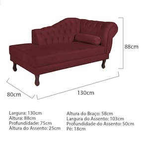 Diva Recamier Dora 130cm Lado Esquerdo Suede Bordô - Vermelho