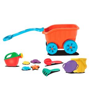 Uma Carriola com acessórios para brincadeiras na areia, parquinho ou qualquer lugar. Possui alça e rodinhas para fácil transporte. Ideal para entretenimento infantil.