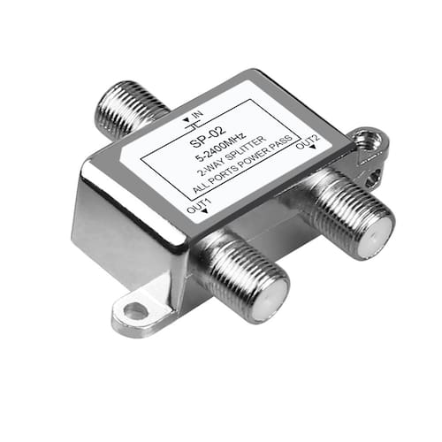 1 entrada 2 saídas (balanceadas) Distribui sinal digital de 2,4 GHz: 5-2400 MHz Power Pass Todas as portas compatíveis com cabos coaxiais RG59 e RG6 Conectores banhados a ouro para resistência à corrosão Características: 1?Caixa fundida em zinco, niquelada