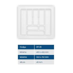 Tamanho mínimo: 48,3 cm x 42,2 cm Tamanho até onde o Divisor da Gaveta pode ser cortado as borda para se encaixar.