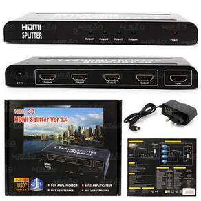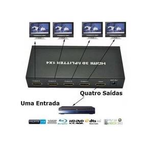 Divisor Splitter Hub Hdmi Divisor 1X4 3D Para Ps3 Xbox Com o Splitter HDMI 1 Entrada 4 Saídas é possível ligar 1 dispositívo com saída HDMI em até 4 monitores, TV e telas. Mantendo a excelente qualidade de áudio e vídeo 1080p Full HD e com design moderno você terá tudo o que precisa em suas maõs para reproduzir a mesma imagem em até 4telas possui fonte de 5v e suporta 3D. Especificações: - Suporta imagens 3D - Resoluções até 1080p incluindo 480i, 576i, 480p, 720p e 1080i. - HDMI categoria 1.4 - Suporte ao padrão HDCP internacional - Ideal para integração de home theater. - 1 entrada HDMI + 4 saídas HDMI. - Fácil e rapida instalação. Plug and play. - Conformidade nos requisitos HDMI / HDCP - Vídeo largura de banda amplificador 2,5 GHz. - Sinal de entrada de vídeo 0.5 - 1.0 volts p-p - Entrada de sinal DDC 5 volts p-p TTL - Faixa de single link 1920 x 1200 - 1080p - Formato de vídeo suportado : 640x 480, 800 x 600, 1024 x 768, 1280 x 1024 - Alimentação 5V DC. Conteúdo da embalagem: 1x Spliter HDMI versão 1.4 3D 1x Fonte 5V DC. Ean: 0782290115380