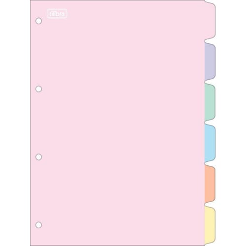 São 6 divisórias diferentes, ideais para a organização e separação de matérias nos cadernos argolados. As Divisórias possuem impressão nas cores rosa, lilás, verde, azul, laranja e amarelo. Divisórias: decoradas Formato: 210mm x 290mm Gramatura: 250 g/m² Material: cartão Número de folhas: 6 folhas Produto certificado: FSC Ean: 7891027316884