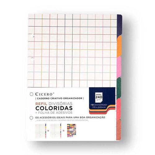 Divisória médio criativo argolado colorido com 12 abas e 1 folha adesivo - Cicero