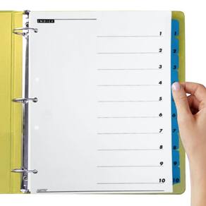 - Marca: Artik - Divisórias com 10 divisões - Possui visor para etiquetas de identificação - Furação universal - Totalmente reciclável e durável - Formato: A4 - Medidas: 297 x 210 mm Comprimento x Largura - Material: Papel Marca: Não Informado