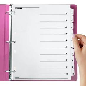 Divisórias para Fichário A4 Artik 10 Divisões C/Visor Números Nome: Números Brancos Divisória para Fichário Ofício 10 Divisões C/Visor. Ideal para organizar e identificar matérias escolares, documentos em fichários e pastas.