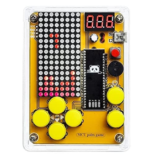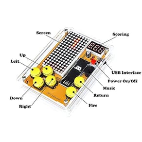 De volta à infância! Vem com cinco jogos do jogo de 51 single-chip, o suficiente para ser forte. Vem com uma campainha, com um som de fundo do jogo; Gold PCB é mais bonito, clássico de luxo, pois um presente é muito apropriado. Bem no topo da pontuação em tempo real do tubo digital para ver quantos pontos você pode obter. Fornecendo um arquivo manual PDF para instalar! Preciso de soldagem nas mãos, simples e fáceis!! Característica: Tamanho:75 * 105 * 10 mm Potência: DC4.5-5.5V 60mA Computador USB power, mini USB Interface 4 tipos de jogos podem mudar o ajuste de luz de fundo, música on / off Listagem do pacote: 1 x Kit de jogo com caixa acrílica