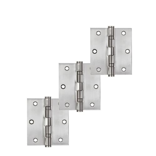 Dobradiças em aço inox, com dimensões 3 x 2 polegadas. Possuem anel em aço inox para melhor funcionamento. A utilização de dobradiças de qualidade é essencial para a sustentação de uma porta.