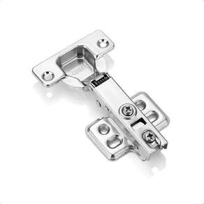 Fabricada em aço e com acabamento cromado, essa dobradiça possui uma abertura de 95 graus, proporcionando uma ampla abertura das portas. Além disso, ela é equipada com um sistema de absorção de impacto, evitando que as portas batam e causem danos.
