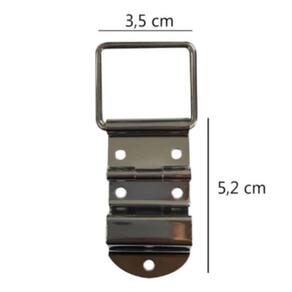 - Altura: 5,2 cm; - Comprimento: 3,5 cm; - 5 furos para fixação.