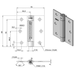 Medidas: 3.1/2 x 3 79 x 89mm Espessura: 2mm Material: Aço Acompanha Chave Allen para regulagem: Sim Capacidade de peso: 20 kg por dobradiça