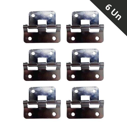 Dobradiça desmontável de metal e acabamento cromado. Kit com 6 unidades.