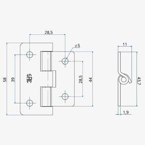 DESCRIÇÃO Dobradiça Escamoteável Santo Angelo é feita para abrir e retirar a tampa do case com facilidade. Material robusto de metal cromado, contém 4 furos para instalar tornando simples essa ação. Grande durabilidade e segurança deixando você tranquilo. MARCA Santo Angelo MODELO Dobradiça Escamoteavel 4 Furos D1 90 Dias OBSERVAÇÃO Aço Zincado ESPECIFICAÇÕES TÉCNICAS - Modelo: Dobradiça Escamoteavel 4 Furos D1 - Cor: Zincado - Material : Aço SAE 1010 / 1020 - Com 4 furos para instalação - Espessura: 1,90mm - Diametro do Furo: 5,0mm - Tamanho: 4,3 x 5,8 x 1,1 cm - Peso unitário : 44g Marca: Não Informado Ean: 7899028801996