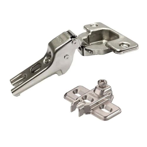 Dobradiça para móveis com diâmetro de furação de 35mm e ângulo de abertura de 107º graus, a dobradiça 35mm 107º graus modul curva níquel sem mola blum é fabricada em aço com acabamento niquelado, Possui sistema de montagem calço/dobradiça por meio de parafuso deslizante slide-on e é ideal para montagem de portas de armários de cozinha, guarda-roupas, racks e para o mobiliário em geral.