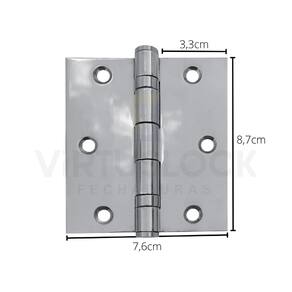 Dobradiça Polida C/Reto Inox Com Rolamento 3 ½ x 3 -