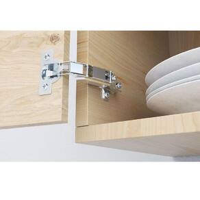 A dobradiça slide on 165 ou dobradiça camarão como é conhecida, possui uma abertura de 165 graus, muito utilizada para móveis que necessitem de abertura maior, como portas de canto.