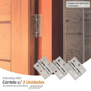 Dobradiça para Porta Silvana 2.1/2 com Rolamento 882 Embutir 25kg Inox Escovado com 3 unidades - conheça esta Excelente Dobradiça de Porta. A Dobradiça Silvana é um componente de alta qualidade projetado especificamente para portas. Fabricada em aço inoxidável 304 com uma chapa de 1,9 mm de espessura, essa Dobradiça Inox se destaca pela sua durabilidade e resistência. O que a torna verdadeiramente especial é a presença de rolamentos e lubrificação interna no pino, garantindo um movimento suave e uma incrível resistência, tornando-a a escolha ideal para suas portas. Dobradiça de Porta Silvana: A Solução Eficiente para Suas Portas, Janelas e Moveis. A Dobradiça com Rolamento, com acabamento em Inox Escovado, se você procura algo forte e que dure muito para portas, janelas e móveis, esta é a melhor opção. A Dobradiça Inox é bem feita e usa peças de alta qualidade, então você pode confiar nela para muitas coisas diferentes. Use essa Dobradiça de Porta para garantir que suas portas se movam suavemente e sejam bem resistentes. Quantos Quilos a Dobradiça Silvan Suporta: Com uma capacidade de suporte de até 25 kg, esta Dobradiça de Porta foi projetada para garantir que suas portas permaneçam firmes e seguras. Se você está procurando uma solução robusta para portas mais pesadas, a Dobradiça Silvana é a escolha ideal. Dimensões da Dobradiça Inox: A dimensão exata da Dobradiça é de 2.1/2 x 3 polegadas. Características Gerais do Produto: Código: Sim Tamanho: 2.1/2 Material: Inox 201 Possui Rolamento: Sim : 12 meses Acompanha o produto: 3 Dobradiças Parafusos Para Fixação : Fabricante Marca: Não Informado Ean: 1003001218701