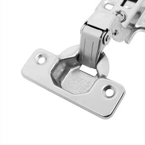 Fabricada em aço niquelado de alta qualidade, essa dobradiça garante resistência e durabilidade excepcionais. Seu design compacto e funcional permite um fechamento controlado, evitando impactos bruscos e prolongando a vida útil do móvel.