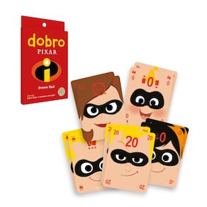 Dobro Pixar Promo Pack: Os Incríveis inclui 10 cartas especiais com novos efeitos que podem ser adicionadas ao jogo Dobro Pixar em diversas combinações.