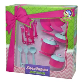 O conjunto jantinha da linha Doce Cozinha, da Cardoso, é fabricado em plástico de qualidade, garantindo durabilidade e resistência durante o uso. Com cores alegres, conta com 14 peças, sendo 2 pratos, 2 garfos, 2 facas, 2 colheres, 1 escumadeira, 1 espátula, 1 concha e 3 panelas com tampa. Agora é só preparar o jantar e chamar as amigas para se deliciarem com incríveis receitas. Um conjunto ideal para trazer diversão é alegria para as meninas.