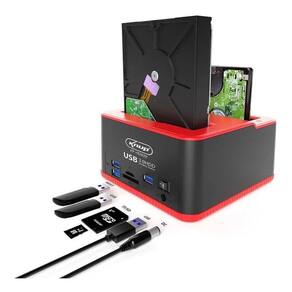 - Estação portátil - Permite conector HD's, pendrives e cartões de memória simultâneamente - Possibilita a conexão de 2 HD's SATA de 2,5 ou 3,5 - Suporta cartões TF, SD card - Alimentação de Entrada: 110/220 Vac 0,3A - Conexão USB: 3.0 - Capacidade Máxima: 2 TB - Possui função de clonagem