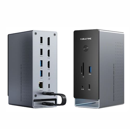 Dock Station Estação De Ancoragem 16 In 1 Cabletime A Dock Station Estação de Ancoragem 16 in 1 Cabletime é a solução ideal para quem busca versatilidade e eficiência em seu espaço de trabalho. Com 16 ranhuras disponíveis, esta estação oferece inúmeras opções de conectividade para todos os seus dispositivos. Seja para o escritório, home office ou entretenimento, a Dock Station proporciona uma organização impecável e um fluxo de trabalho otimizado. A fonte de alimentação garante a energia necessária para todos os seus dispositivos, evitando sobrecargas e permitindo um uso contínuo. Com tecnologia avançada, a estação oferece compatibilidade com uma ampla variedade de aparelhos, facilitando a conexão de múltiplos periféricos ao mesmo tempo. O design moderno e prático da Dock Station Cabletime é perfeito para quem valoriza estética e funcionalidade. Integre toda a sua tecnologia em um único ponto de acesso e transforme sua experiência digital com esta estação de ancoragem inovadora. Experimente a combinação perfeita de desempenho e inovação com a Dock Station Estação de Ancoragem 16 in 1. Maximize a sua produtividade e conecte-se com o que há de melhor em tecnologia. MODELO Nº : CB18G Entrada: USB C Suporte MST Saída: 1HDMI 4K60Hz, 1HDMI 4K30Hz, 1DP 4K60Hz, 2USB-C 3.2 10Gbps, 1USB-A 3.2 10Gbps, 2USB-A 3.0 5Gbps, 2USB-A 2.0 480Mbps, 1SD 3.0,1TF 3.0, 1LAN 1000Mbps, 1USB-C 100W,1Áudio e microfone 3,5mm Material: Alumínio Shell Acessório: Cabo USB C Gen2 1m SKU: CT-DK181-AG do vendedor: 90 dias Marca: Não Informado