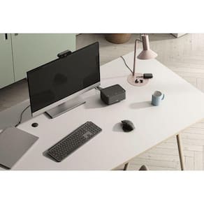 Com o Logi Dock, você pode organizar seu desktop de forma eficiente. Ele permite o carregamento e conexão de até cinco periféricos USB e dois monitores, substituindo carregadores e cabos de alimentação. Além disso, o Logi Dock trabalha perfeitamente com as principais plataformas de chamadas, otimizando o trabalho remoto e aumentando sua produtividade.