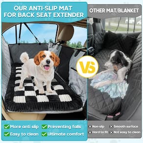 - Design antiderrapante: quando você está dirigindo com seu amado animal de estimação, a segurança é de extrema importância. Você não precisa se preocupar com a cama de cachorro do carro deslizando e distraindo você enquanto dirige. O padrão antiderrapante aumenta o atrito em 70% em comparação com os tapetes padrão para animais de estimação, mantendo os filhotes ansiosos posicionados com segurança durante tempestades ou passeios nas montanhas.
