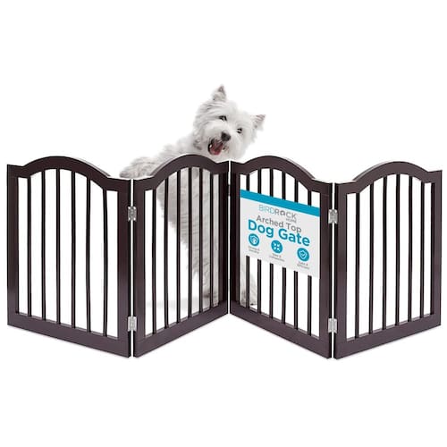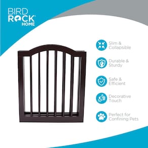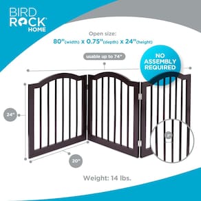 O portão arqueado superior para cães é uma solução versátil e elegante para manter seus animais de estimação seguros. Com seu design independente de quatro painéis, forma facilmente uma barreira estável em portas, corredores e escadas. Feito de madeira MDF durável com acabamento expresso, é feito para durar e adiciona um toque decorativo à sua casa. O portão se dobra até uma profundidade fina de 7,6 cm para armazenamento conveniente. Fácil de montar e mover, oferece uma maneira flexível de confinar seus animais de estimação sem a necessidade de acessórios de parede, melhorando a funcionalidade e o estilo da sua casa. - PORTÃO PET VERSÁTIL: este portão superior arqueado para animais de estimação oferece uma maneira elegante e funcional de manter seus animais de estimação seguros. Seu design independente permite que você o instale facilmente em qualquer lugar da sua casa, tornando-o perfeito para portas, corredores e escadas. - Design robusto de 4 painéis: com quatro painéis resistentes com dobradiças, este portão pode ser organizado em forma de Z estável. Esta configuração versátil garante que o portão fique firme sem a necessidade de acessórios de parede, oferecendo uma solução flexível para donos de animais de estimação. - Durável e atraente: feito de madeira MDF de qualidade com acabamento expresso, este portão é projetado para suportar o uso diário. Combina durabilidade com uma aparência atraente, encaixando-se perfeitamente na decoração da sua casa. - Armazenamento compacto: o portão se dobra até uma profundidade fina de 7,6 cm, facilitando o armazenamento em espaços estreitos quando não estiver em uso. Seu design dobrável garante o mínimo de espaço, oferecendo conveniência e praticidade. - Dimensões: 203 cm L x 1,9 cm P x 61 cm A; Dimensões dobradas: 52 cm L x 7,6 cm P x 61 cm A. Espaço entre as ripas: 5 cm. Peso: 6,4 kg. Este portão é leve e resistente, o que o torna fácil de mover e ideal para vários ambientes internos.