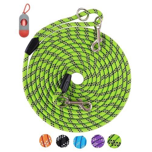 - Excelente coleira para cães ao ar livre: 3 m, 4,9 m, 9 m, 15,2 m e 30,5 m, vários tamanhos podem atender a diferentes propósitos de treinamento. Ótima coleira para cães grandes para esportes ao ar livre, como caminhadas, acampamento, treinamento, caça, quintal, praia, alpinismo, caminhada, corrida e assim por diante. Qualquer problema, não hesite em entrar em contato conosco.
