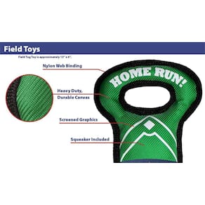 - CONSTRUÇÃO — Este brinquedo exclusivo para cães é feito de lona resistente e durável, unido a uma capa de teia de náilon. Com um logotipo de equipe em tecido e um gráfico de campo de beisebol com tela. HOME RUN!