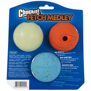 Brinquedos para cães Chuckit Fetch Medley Dog Ball, pacote médio (2,5 polegadas) com 3, para raças médias, inclui bolas Whistler, Max Glow e Rebounce