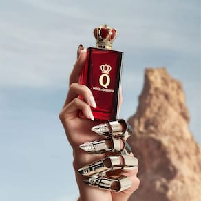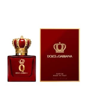 Q by Dolce&Gabbana Parfum é a versão ainda mais intensa e régia da rainha absoluta. Cereja vermelha suculenta e limão siciliano explodem em heliotrópio cremoso e jasmim luxuoso, finalizando em cedro poderoso e musk cristalino viciante, criando uma aura de soberania doce, sensual e inquestionável que transforma quem usa em monarca do desejo ? uma conexão emocional de poder supremo, feminilidade coroada e atração fatal que faz cada gota uma coroa invisível de luxo e domínio.