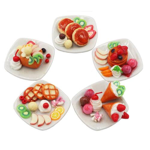 - 5 miniaturas de casas de bonecas, suprimentos de comida para panquecas e waffles, feitos à mão, pequenos alimentos