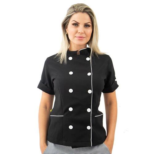 Dolmã Chef de Cozinha feminina ACINTURADA manga curta é produzido em tecido Oxford Premium.