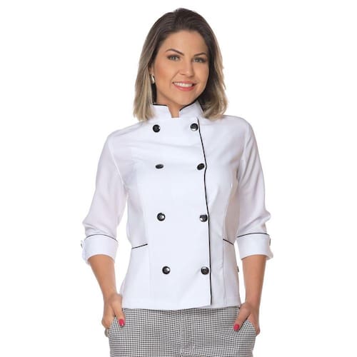A Dolmã Chef de Cozinha feminina ACINTURADA é produzido em tecido Oxford Premium.