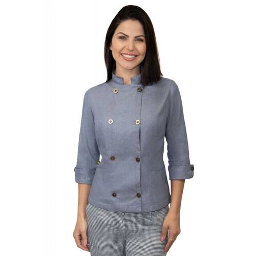 A Dólmã Chef de Cozinha feminina ACINTURADA, manga 3/4 é produzido em tecido Semprigual da Santista.