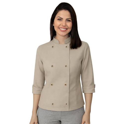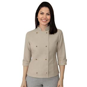 A Dólmã Chef de Cozinha feminina ACINTURADA, manga 3/4 é produzido em tecido Semprigual da Santista.