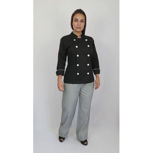 Adquira agora esta Dolma Feminina Chef de Cozinha de Manga 3/4 em tecido de brim na cor preta e eleve o padrão do seu uniforme profissional. Combinando design contemporâneo com funcionalidade essencial, esta peça é uma escolha elegante para profissionais exigentes.
