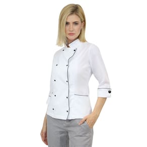Com design diferenciado, a CAMISA CHEFE DE COZINHA FEMININA ou DÓLMÃ CHEFE DE COZINHA FEMININO MANGA 3/4 COM BOTÕES DE PRESSÃO, faz a sua presença ser ainda mais marcante.