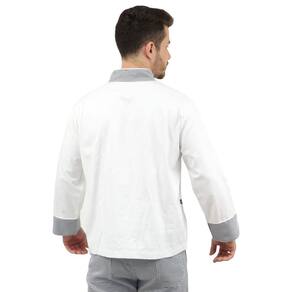 Pode ser abotoado de ambos os lados (direito e esquerdo), por possuir botões internos, o que se torna uma facilidade caso ocorra uma sujeira inesperada.