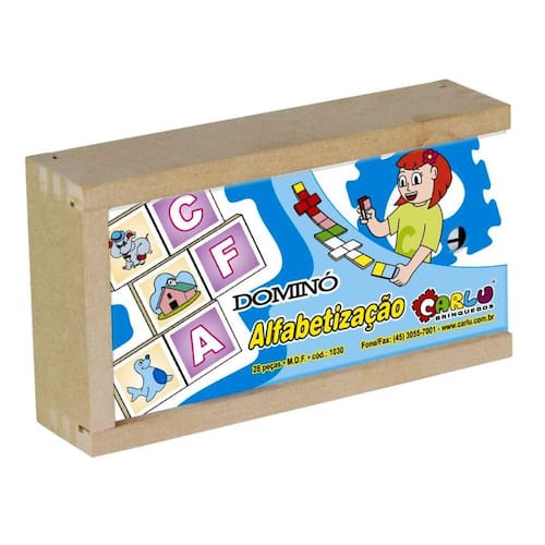 Dominó Alfabetização 1030 28 Peças Carlu Brinquedos Dominó Alfabetização - 1030 Código: 1030 Código de Barras: 7898237851013 Idade: A partir de 3 anos Material: M.D.F. Embalagem: Caixa de madeira com tampa serigrafada. Lacrada com película de P.V.C. Encolhível. Descrição do Produto: O dominó facilita a aprendizagem do raciocínio lógico, concentração e memoria, além de ser uma ótima ferramenta pedagógica quando aliado a diferentes temas e disciplinas. Descritivo detalhado:Confeccionado em M.D.F. 28 peças de 7 x 3,5 cm, pintada e serigrafada com tinta ultravioleta atóxica em uma das faces. Embalagem: Caixa de madeira com tampa serigrafada medindo 17 x 9,5 x 4 cm. Lacrada com película de P.V.C. Encolhível. Ean: 7898237851013