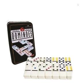Jogo De Domino Mexicano Double 6 Estojo Em Lata 28 peças Dimensões da lata: 11,5 x 19,5 x 5 cm Dimensões das peças: 5cm de comprimento x 2,5cm de Largura x 0,9mm de espessura - Produto de alta qualidade - Perfeito para presente - Com e INMETRO 57040/ Estamos a disposição, boas compras