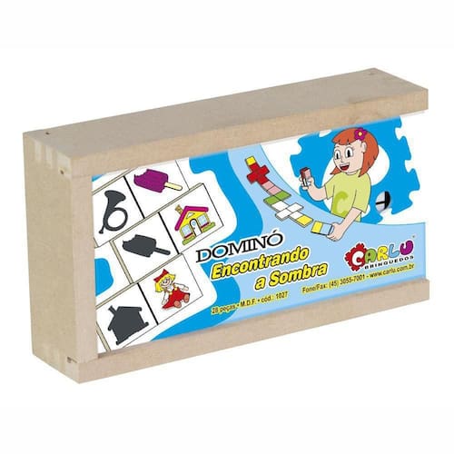 Dominó Encontrando a Sombra - 28 peças - Madeira - 1027 - Carlu O dominó de sombras facilita a aprendizagem do raciocínio lógico, concentração e memória, além de ser uma ótima ferramenta pedagógica quando aliado a diferentes temas e disciplinas. Faça a associação correta do objeto com sua sombra. Descritivo detalhado: Confeccionado em M.D.F. 28 peças de 7 x 3,5 cm, pintada e serigrafada com tinta ultravioleta atóxica em uma das faces. Embalagem: Caixa de madeira com tampa serigrafada medindo 17 x 9,5 x 4 cm. Lacrada com película de P.V.C. Encolhível. Idade: A partir de 3 anos. Material: M.D.F. Embalagem: Caixa de madeira com tampa serigrafada. Lacrada com película de P.V.C. Encolhível. Ref.: 1027. Conteúdo da embalagem: 28 peças. Medidas do produto C x A x L 17 x 10 x 4 cm. Medidas da embalagem: C x A x L 17 x 10 x 4 cm. Peso aproximado do produto: 350 gramas. Embalagem: caixa de papelão. Prazo de garantia: 03 meses de garantia legal. Observe atentamente a idade recomendada para o brinquedo. Pode conter partes pequenas que podem ser engolidas e perigosas. Fotos ilustrativas as cores e modelos podem sofrer alterações sem aviso prévio. A indústria Carlu Brinquedos nasceu de um sonho. Sonho de uma professora, dinâmica, disposta e com a ideia fixa de vencer e vender algo que ela mesma pudesse criar e produzir. INMETRO CE-BRI/ICEPEX-N 00934-29 NBR NM 300/2004 Ean: 7898237850986