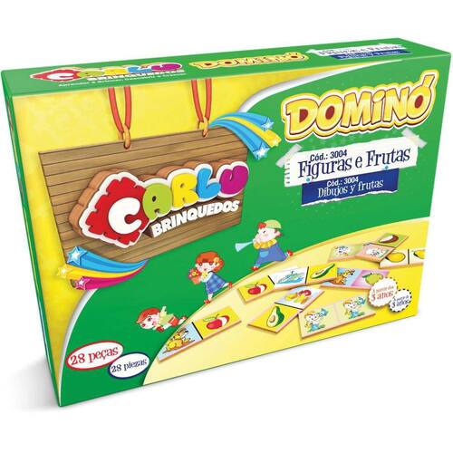 Domino figuras/frutas em madeira 28pc Embalagem: unidade Dominó figuras e frutas 28 peças pintadas e serigrafadas com tinta ultravioleta atóxica em uma das faces. Características: Marca: carlu Idade recomendada: acima de 3 anos Material: mdf Conteudo da embalagem: 28 peças de 7 x 3,5 cm Tamanho embalagem cxaxl : 19x5x14 cm Ean: 7898237855356